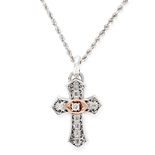 Eye Cross Pendant — 10K White & Rose Gold